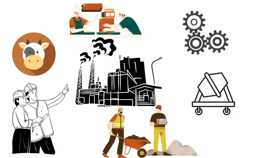 Sous-secteurs : ciment, acier, chimie, textile, etc.
